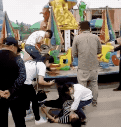 妈妈带姐弟俩去游乐园玩,一时没注意,弟弟爬上正在运行的玩具火车,瞬间被卷进飞快运转的车里,头部受重创……