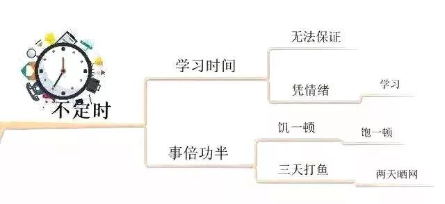 学习时间不固定,每天必要的学习时间无法保证,学习时完全凭情绪,情绪好的时候可以学到深夜,情绪不好的时候,就什么都干不下去。
