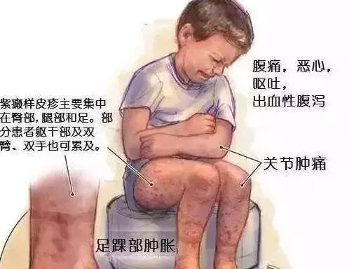 家长如果发现孩子有这样的状况就要格外注意了,尤其是伴发腹痛、关节痛的孩子,不要认为是孩子是消化不良,或者误认为是磕了碰了,耽误了病情。