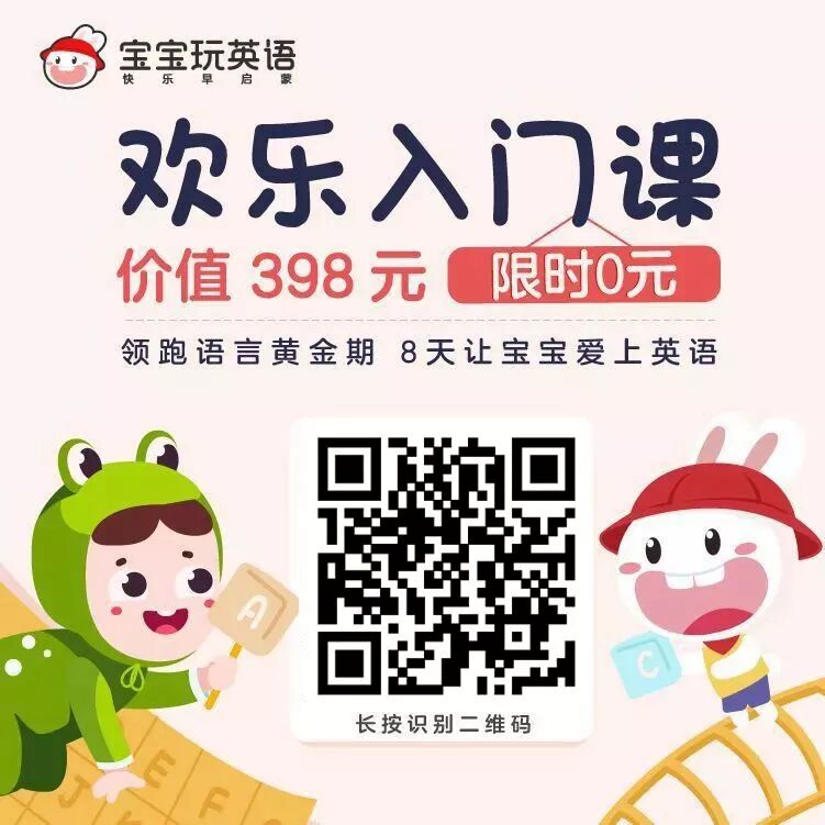 点击【阅读原文】免费领取价值398元的8天英语启蒙课~让孩子感兴趣最重要,在“宝宝玩英语”,孩子从小爱上英语! -广 告-