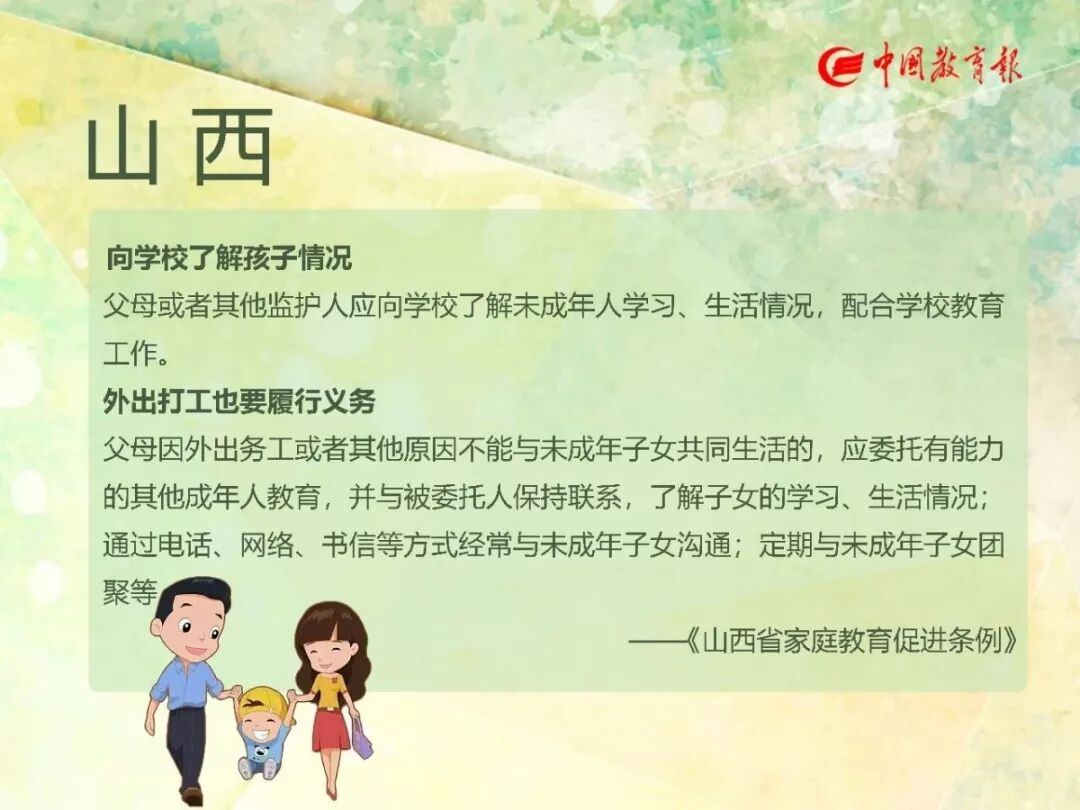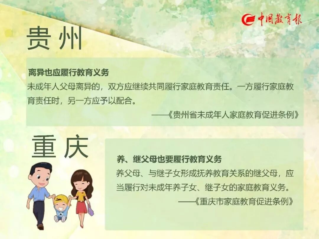 近日,江苏省拟通过立法的方式,明确家长在家庭教育中的责任,拒绝“丧偶式”育儿,这一做法引发了广泛关注。据了解,重庆、贵州、山西等地也先后出台了相关法律法规,厘清家长的教育职责,尤其是针对离异家庭、重组家庭、外地务工家庭,都做出了明确的规定。