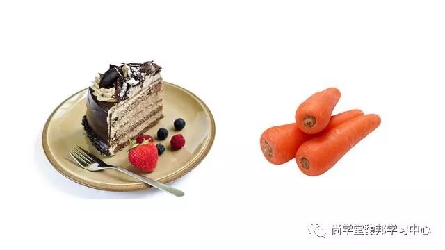 研究人员找来一些还没有吃午饭有些饥饿的学生,在每个人面前放两盘食物,一盘是香甜可口的巧克力饼干,另一盘是胡萝卜。之后研究人员告诉第一组学生想吃哪个就吃哪个;告诉第二组学生,如果饿的话只能吃胡萝卜,不能吃饼干。