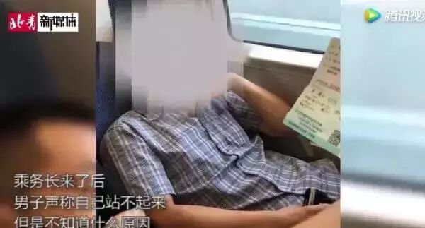 乘务长来了之后,该男子开始耍无赖装病,依旧不肯起来,声称“自己站不起来”。