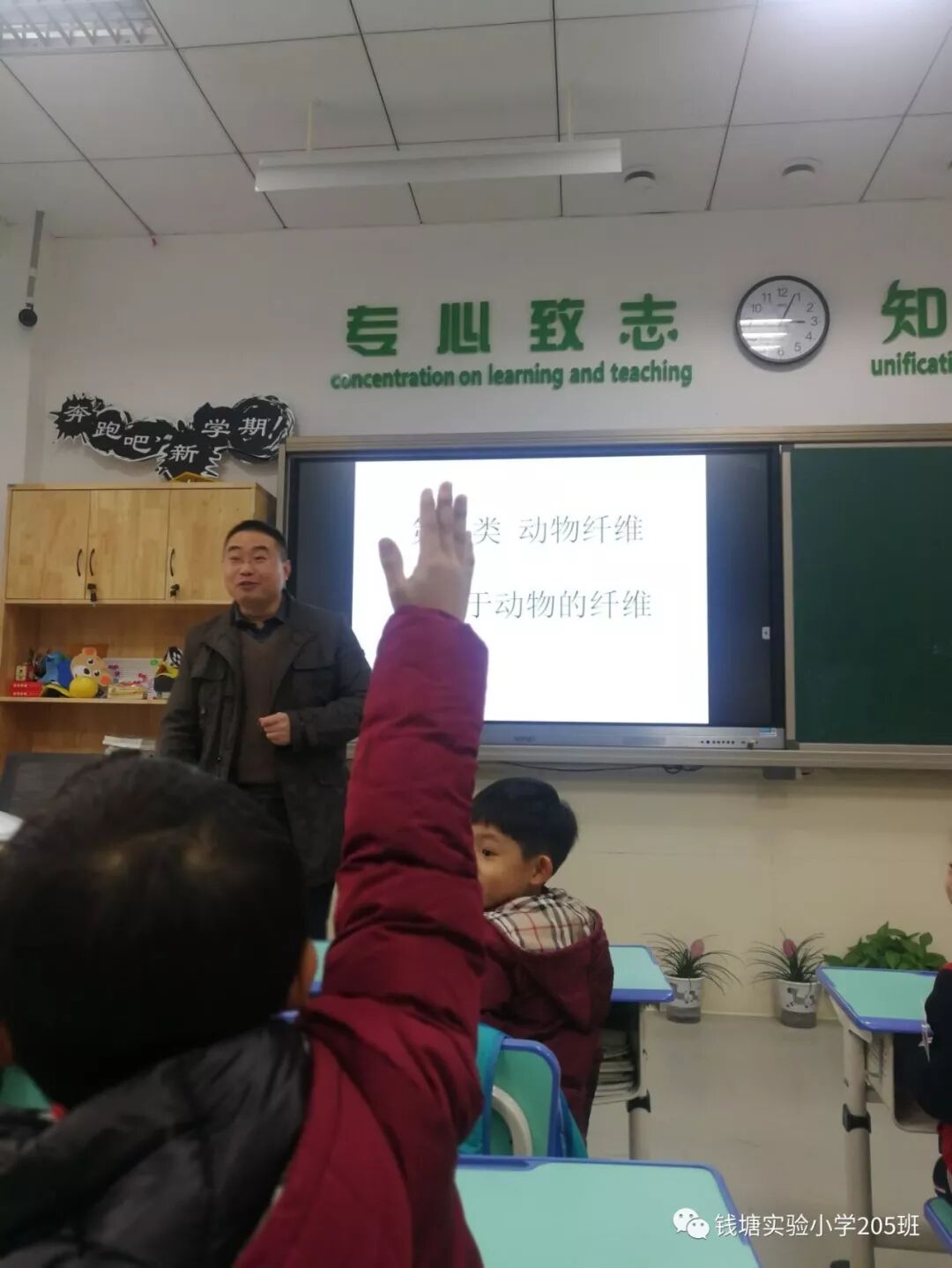 课上,馨然爸爸利用图文耐心地讲解,和大家一起来观察。同学们了解了面料的发展,古时候淳朴的人们,是怎样利用纤维最终织成了美丽的布匹,以及现代利用先进的机器设备,织出质感细腻、色彩更丰富的面料。