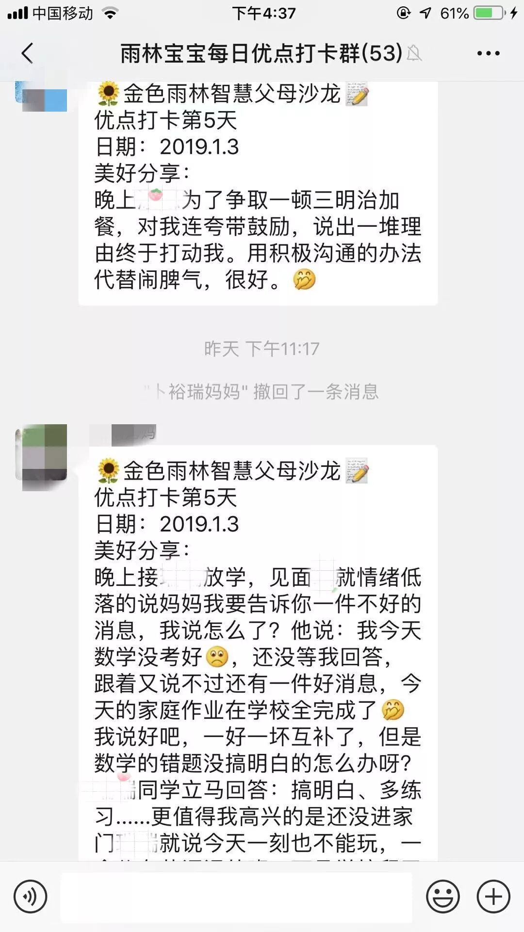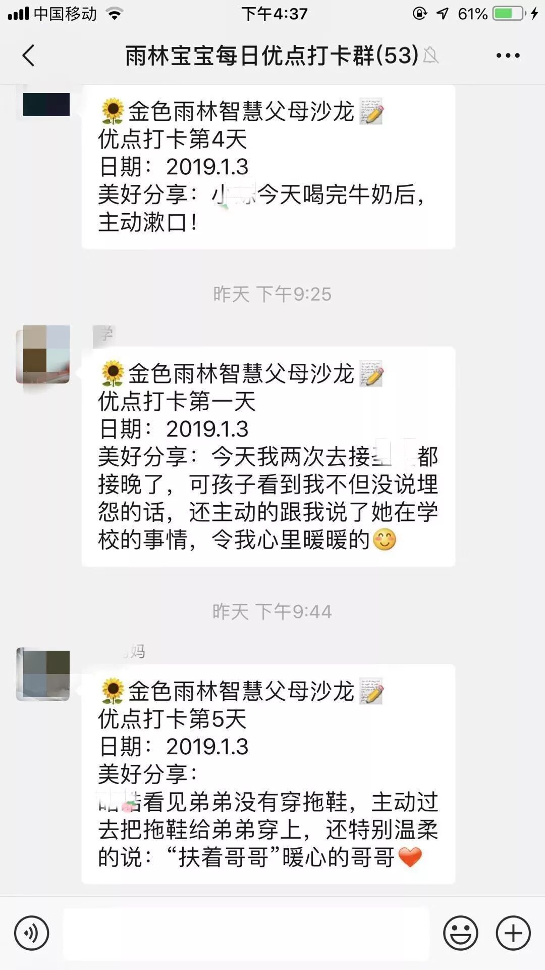 为了鼓励家长寻找孩子的优点,并持续做有智慧家长,邢老师鼓励家长互相监督,建群打卡夸宝宝,获得了听课家长的全票支持!