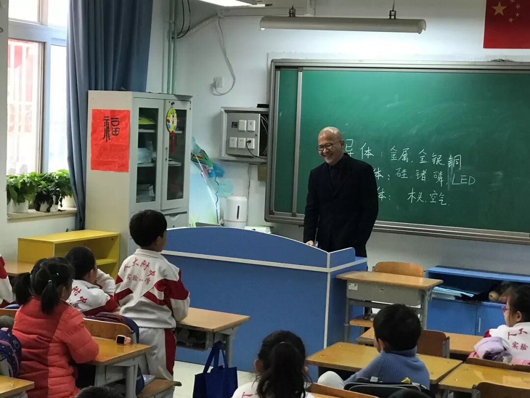 2019年1月3日,人大附中实验小学一年级3班的同学们,迎来了一场不可思议的科学探索之旅。由在美国三星奥斯汀(Austin)公司工作的沃松涛资深工程师,带领同学们走进指甲盖上的晶体管王国,讲解从沙子到芯片的神奇历程。