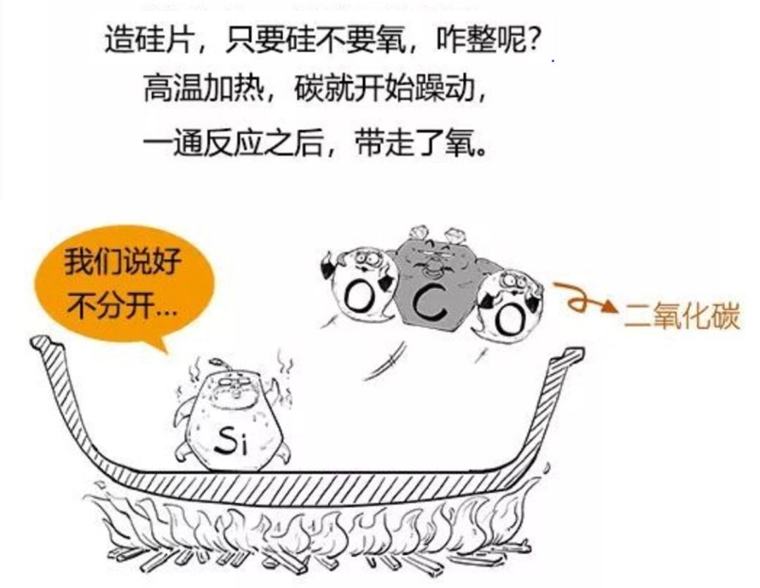 芯片的制作过程由以下几个步骤。首先是让芯片干活的场地,也就是硅片。它的原材料是沙子的主要成分,二氧化硅。制造硅片,要将二氧化硅和碳进行高温加热提纯,生成二氧化碳和硅。