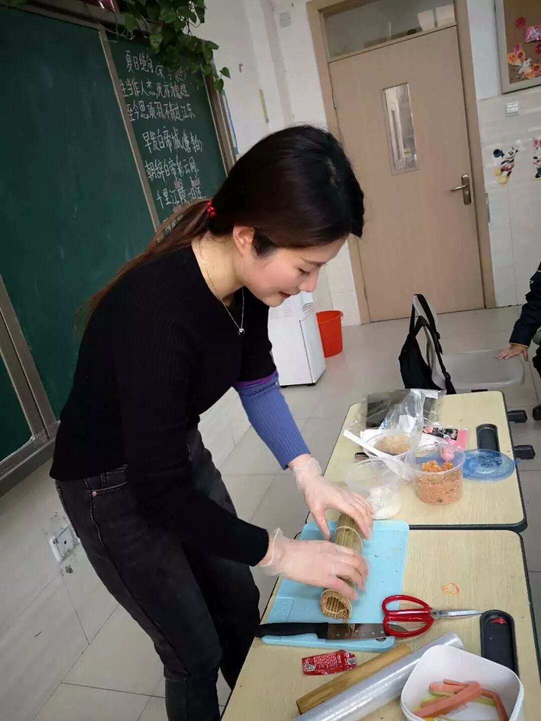 垶宸妈妈是班里宝妈公认的美食家,每次的班级活动或者聚餐,垶宸妈妈总会自己做几个特色又美味的小吃,带到班里让大家一起分享。爽口鸡爪是最受欢迎的,有几个宝妈还准备自己做,专门要来了配料和方法。今天垶宸妈妈又会给孩子们带来一节什么样的家长课堂呢?肯定还是跟美食有关啦,要教孩子们做一个简单易学又美味的小吃——寿司。
