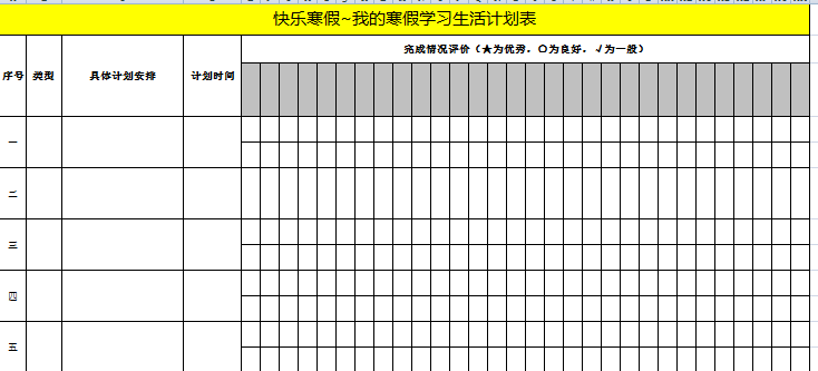 特别提醒:寒假计划表要劳逸结合,不能光玩不学,也不能光学不完,并每天抽时间给孩子评价完成情况。