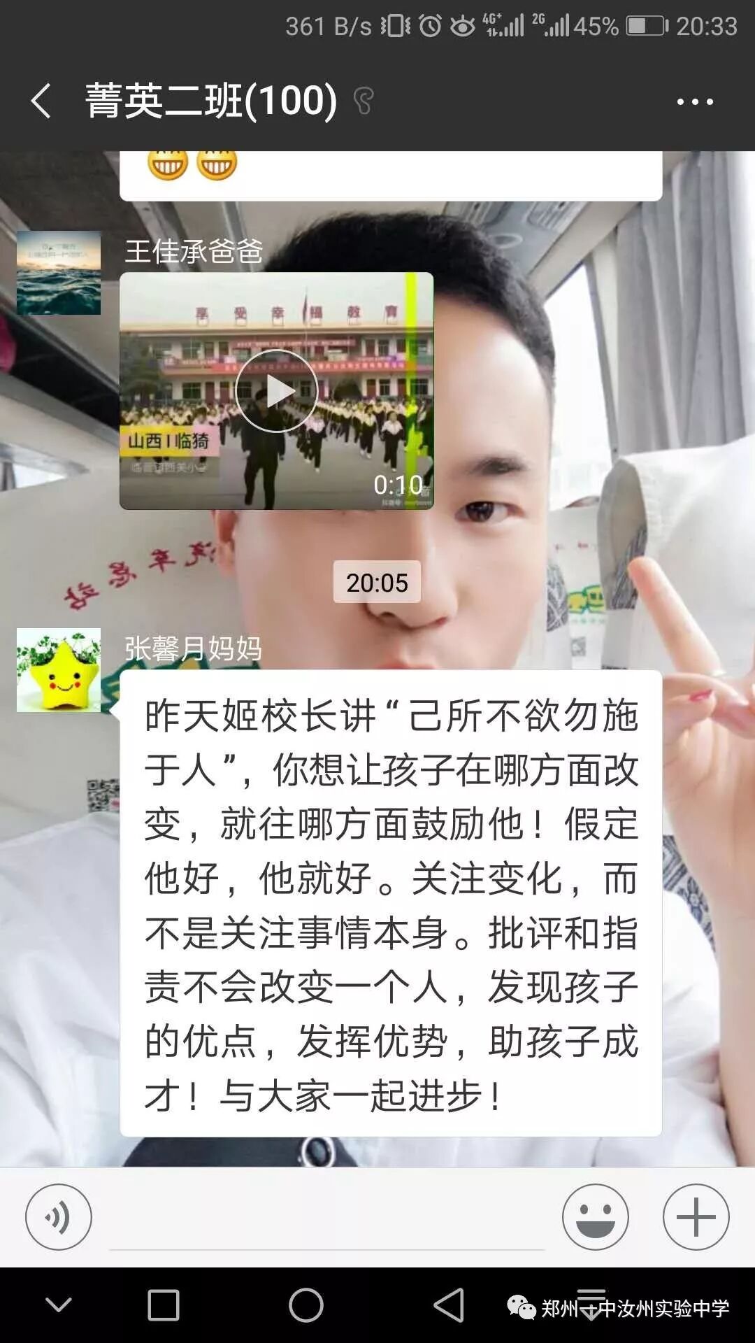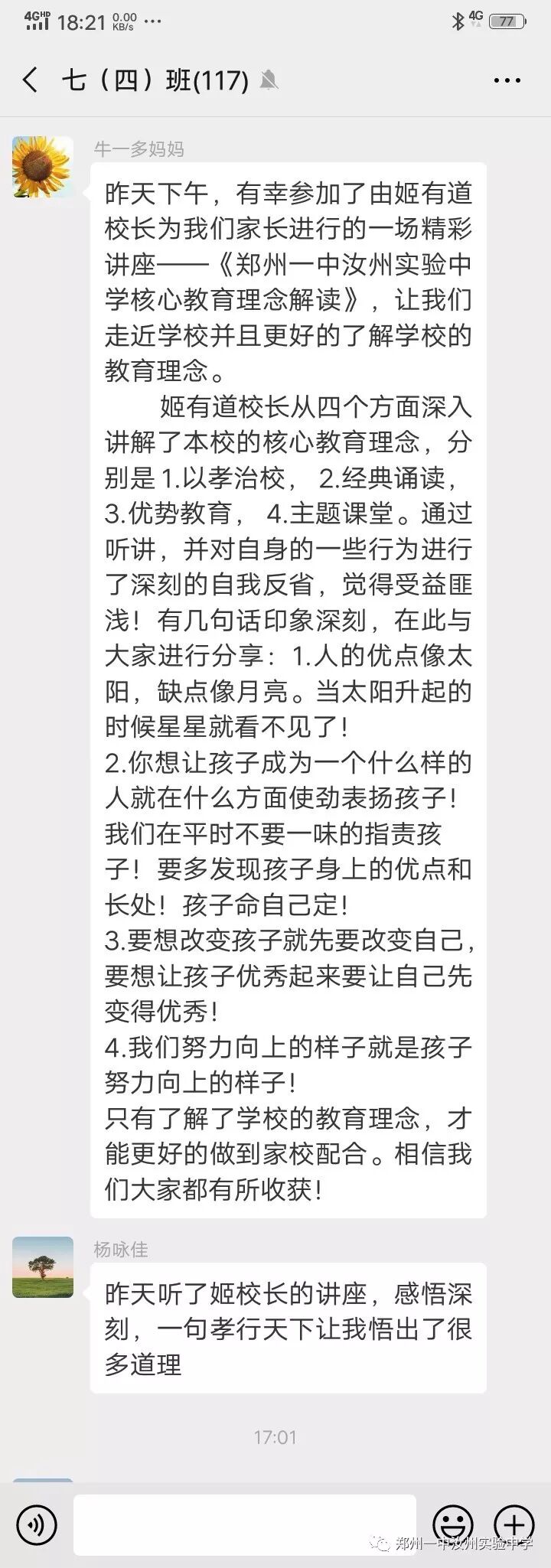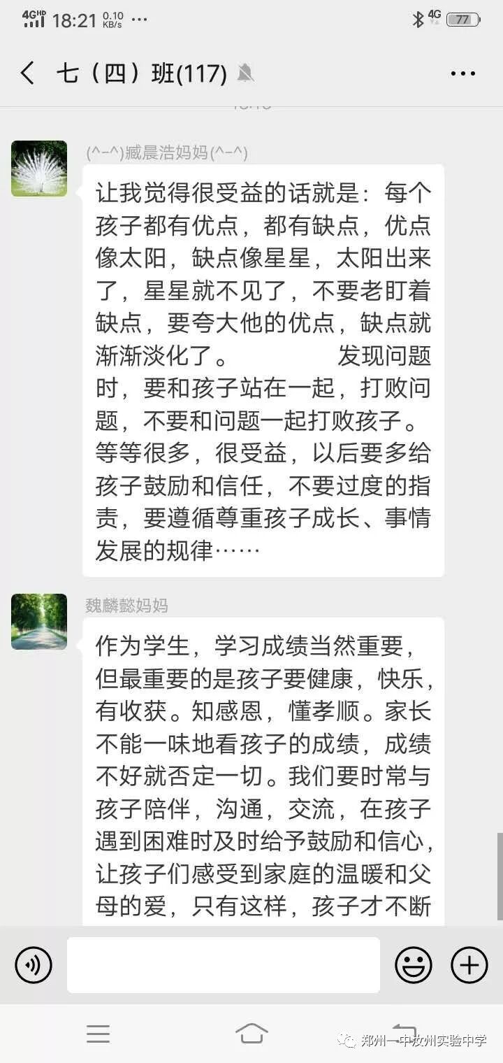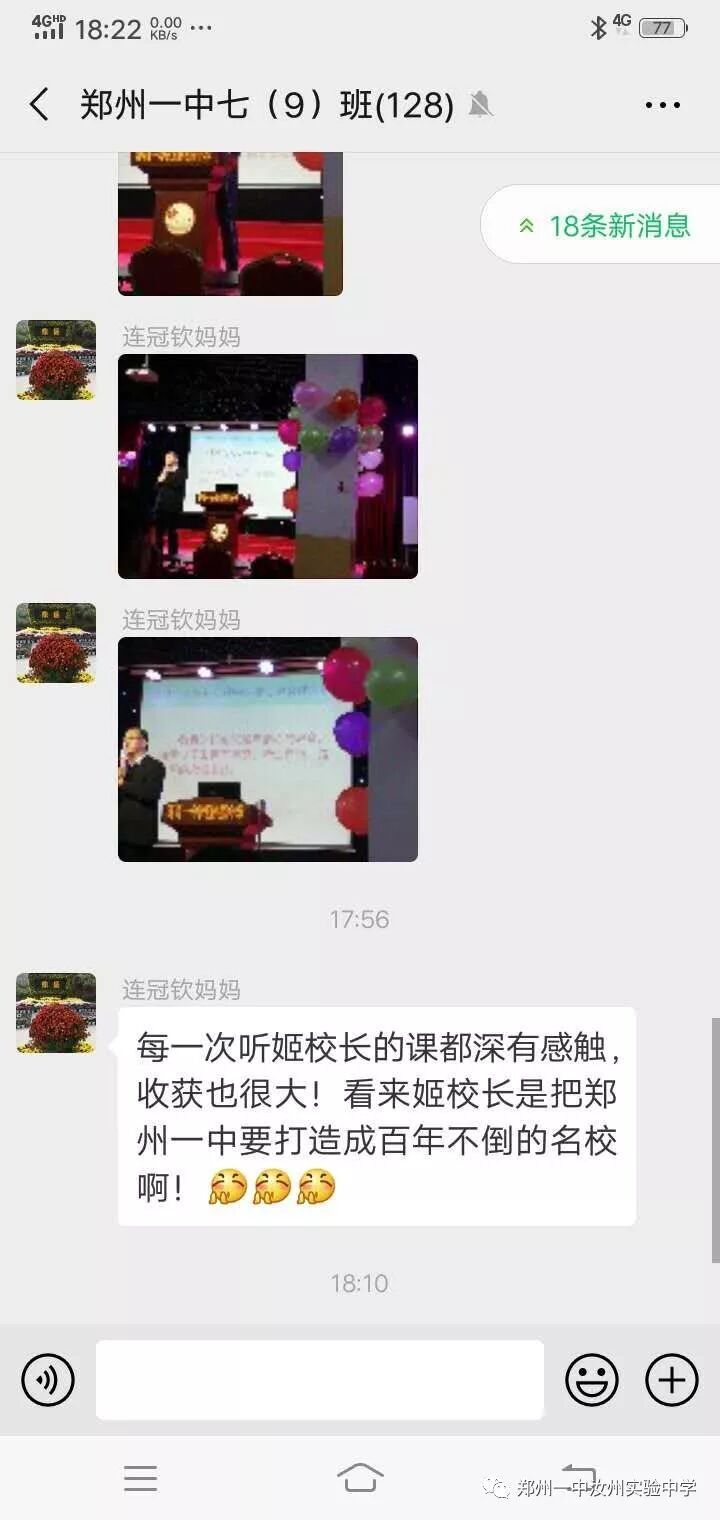 家长会上,姬校长从逐年攀升的中招成绩、市领导的支持、校训、教育格言、教育情怀、我校幸福观等角度全方位、多层次介绍了学校成长历程;同时使家长对我校以孝治校、经典诵读、优势教育、主体课堂四大核心教育理念有了更加深刻的认识;姬校长还从我校专设“道歉日”讲到每周“以你为榜样”获赞优秀教师,让家长们对我校师生的思想道德建设有了一个更进一步的了解。第二课堂的开展,让家长们对我校学生多姿多彩的课外活动有了一个全面的认识。