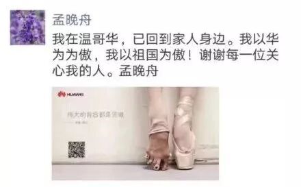 前段时间,相信大家都关注到“孟晚舟女士在加拿大被捕”这一新闻。经过多方努力之后,孟晚舟女士最终获得保释,她在获释后发了一条朋友圈,里面内容值得大家深思!