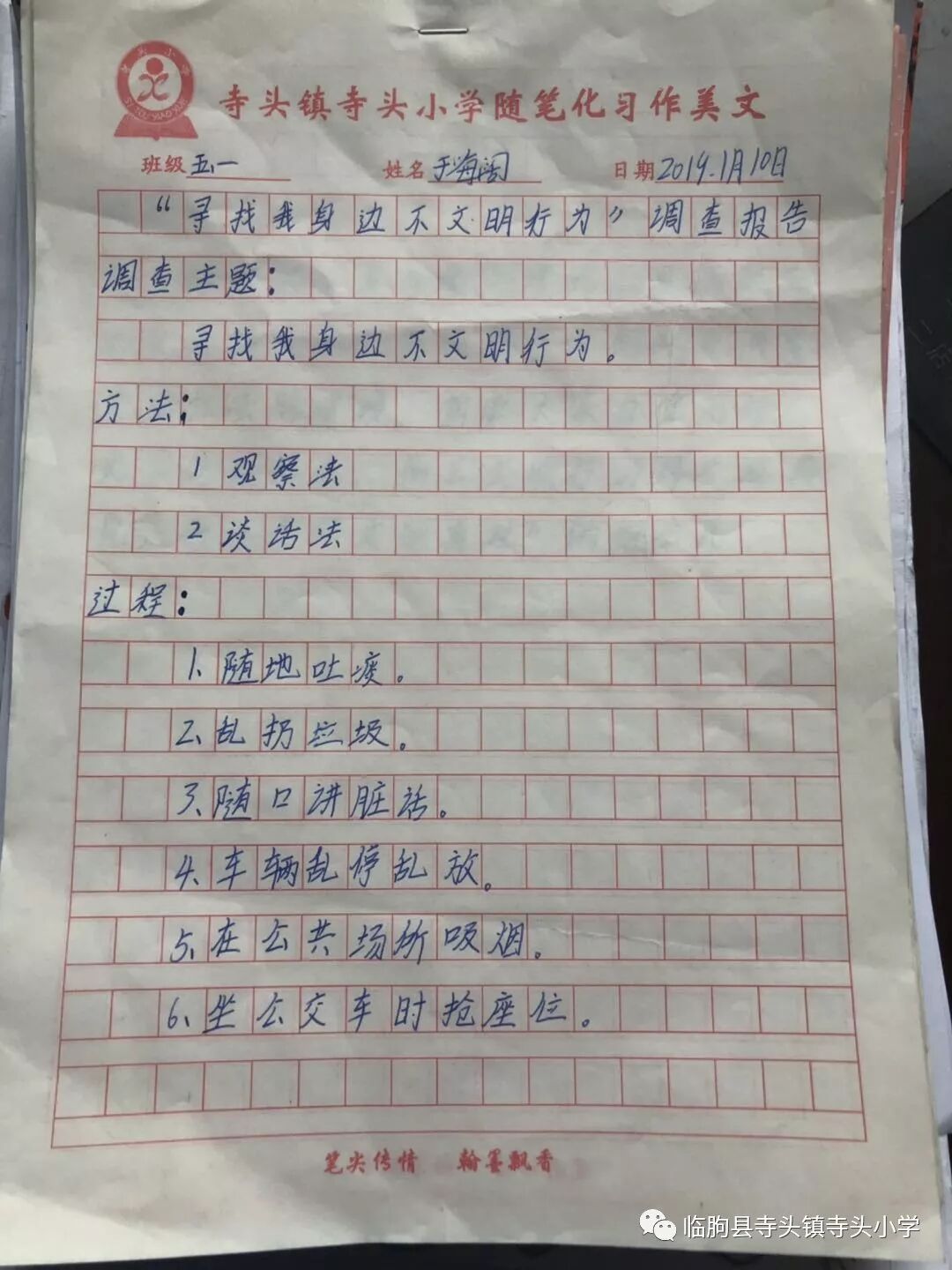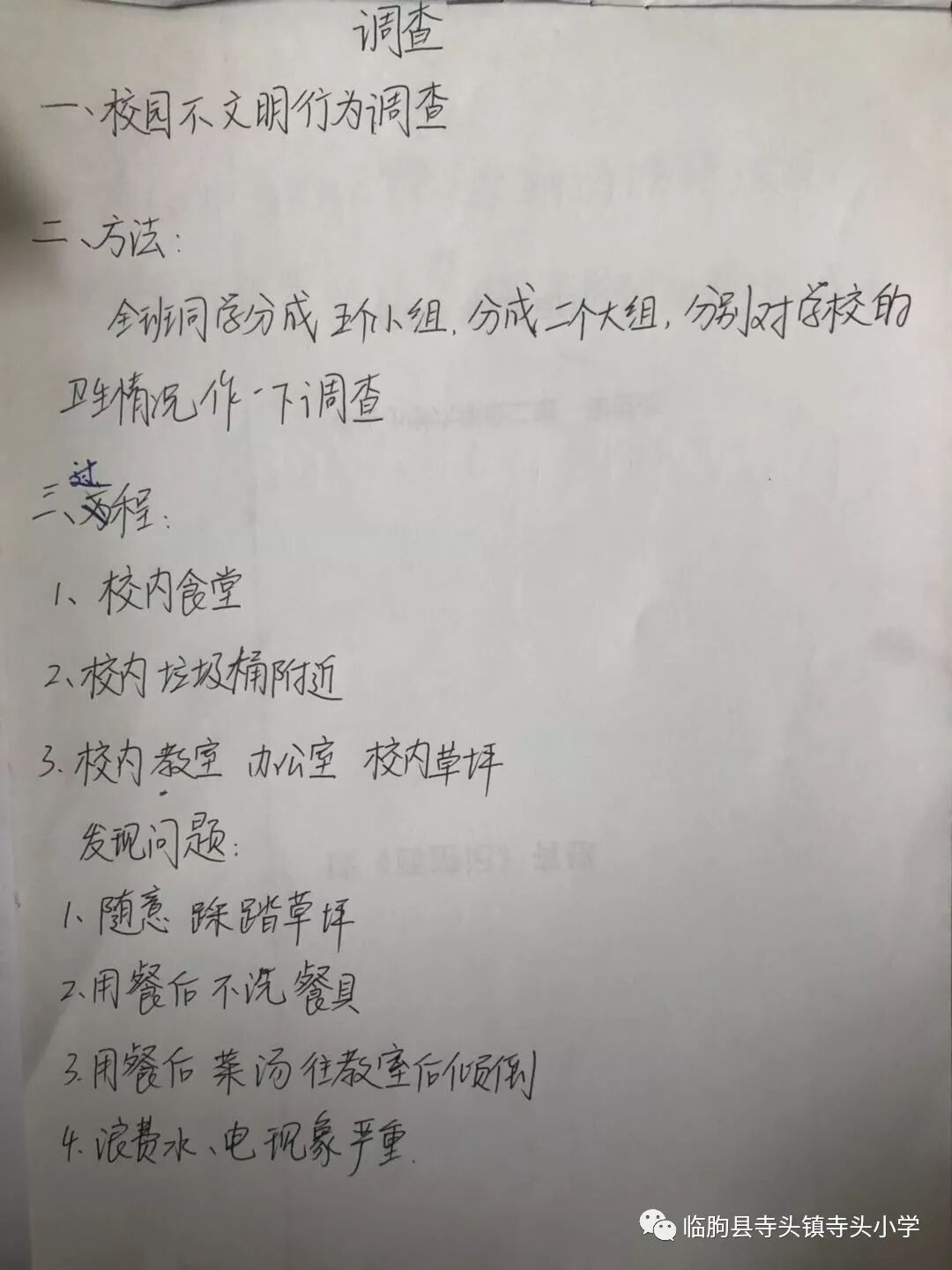 二是开展一次“寻找我身边不文明行为”社会调查(五、六年级学生)。