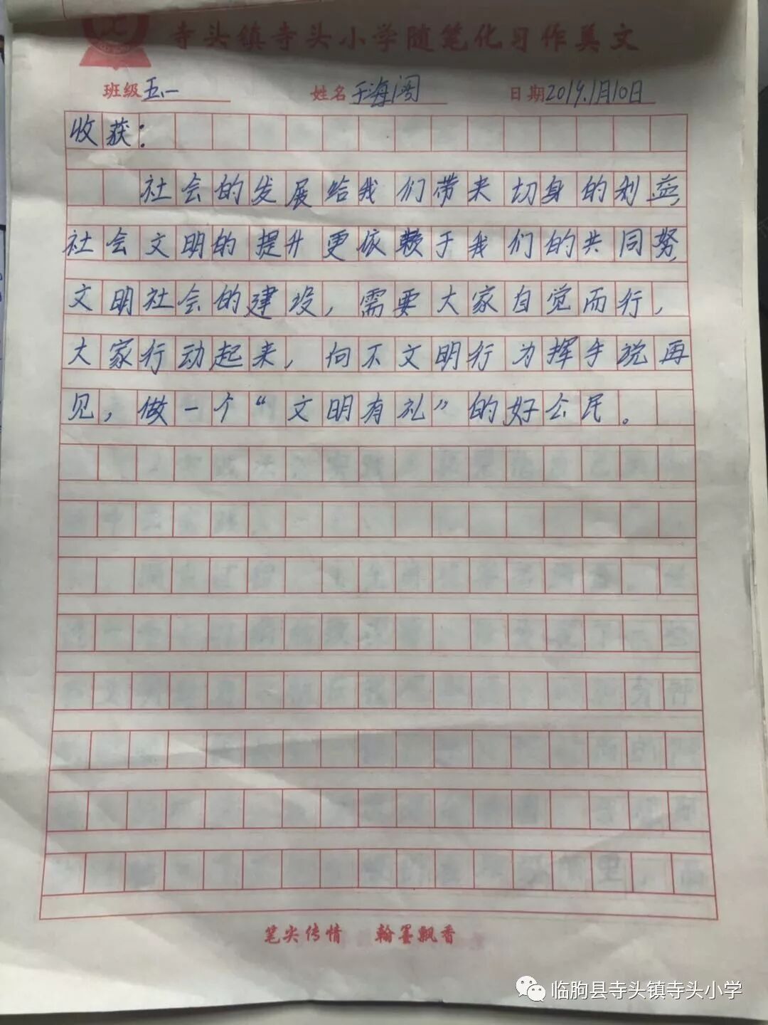 五是家校共育“我和文明手拉手”,和家长一起做一件好人好事,如学习好习惯,卫生好习惯,生活好习惯等。