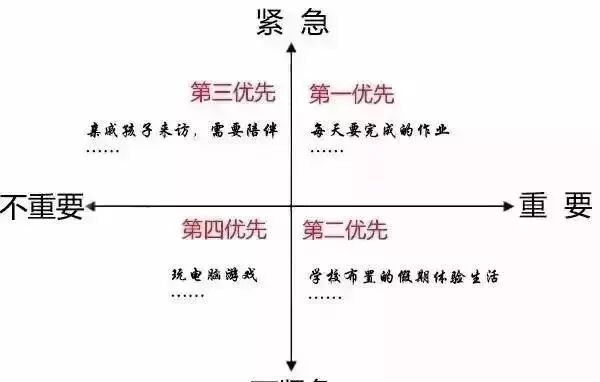 假期里每天需要完成的作业,紧急且重要,优先做;