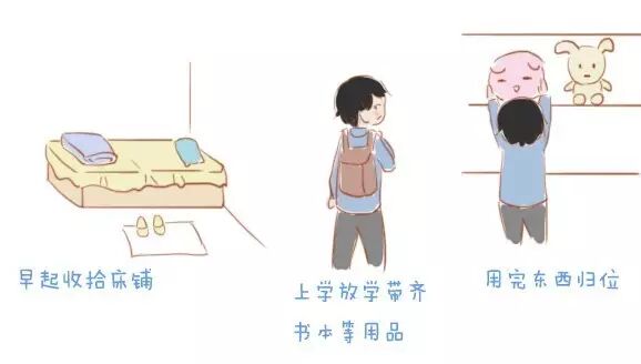 孩子上学后有许多收拾课桌、准备下节课的活动,这些都需要平时在家中养成良好的收拾习惯,每做完一件事情就一定要回头看看留什么“尾巴”没有。