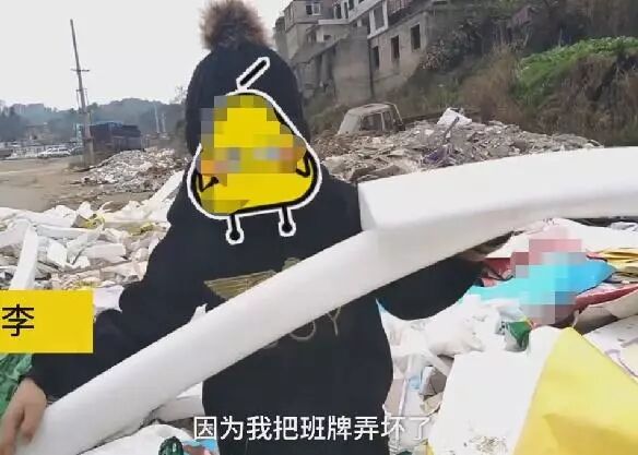 原来拍摄者是男孩的妈妈,男孩平日里总爱搞破坏,这回把班里的班牌弄坏了,妈妈正用捡垃圾的方式来惩罚他。