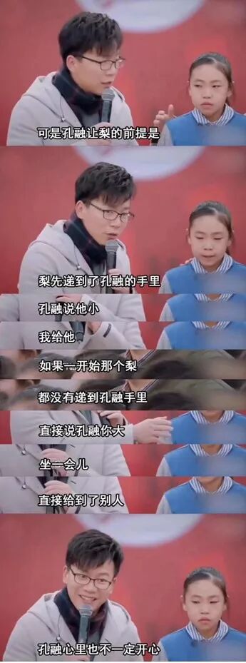 孔融让梨的前提是,梨先递到孔融的手里。如果一开始这个梨,都没有递到孔融手里,直接说你的梨大,直接给到别人),那孔融也不一定开心。
