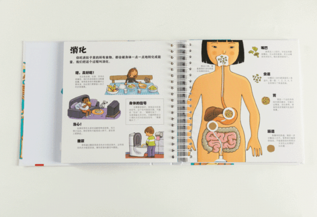 这本书的内容相当丰富!从出生到长大,从进食到排便,身体各个器官的知识全都有。
