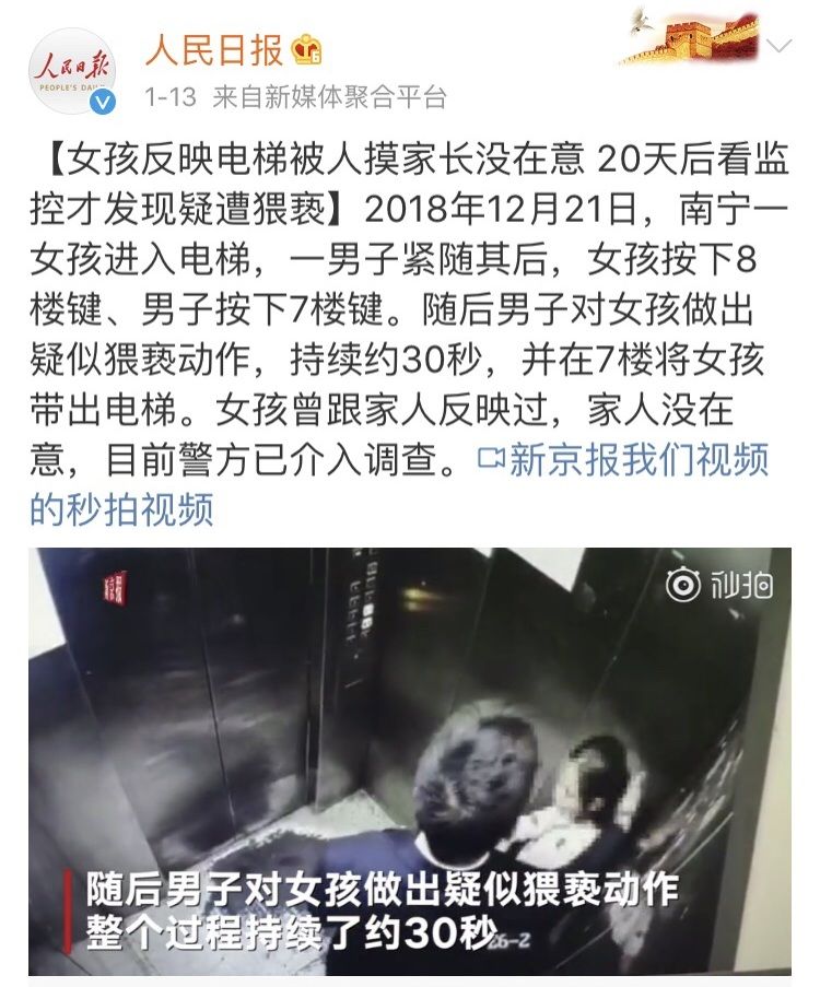 比如下面这则新闻里的小女孩,在电梯里被陌生男子“疑似猥亵”30秒,甚至在不是自己家的楼层被带出电梯,然而她全程没有反抗......