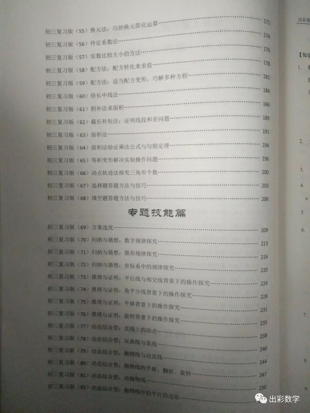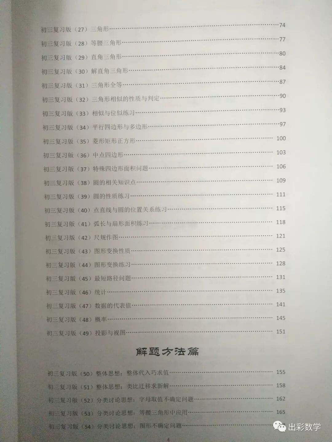 初三了,多买试卷类的教辅,多刷题效果不一定好的。有效率的刷题,才是有用的。《出彩数学(初三复习版)》和《出彩数学(中考压轴题)》里面题型归类与训练全面、解题方法归纳讲解到位,或许能帮到你。公号“资源目录”中也可以找到一些节选。