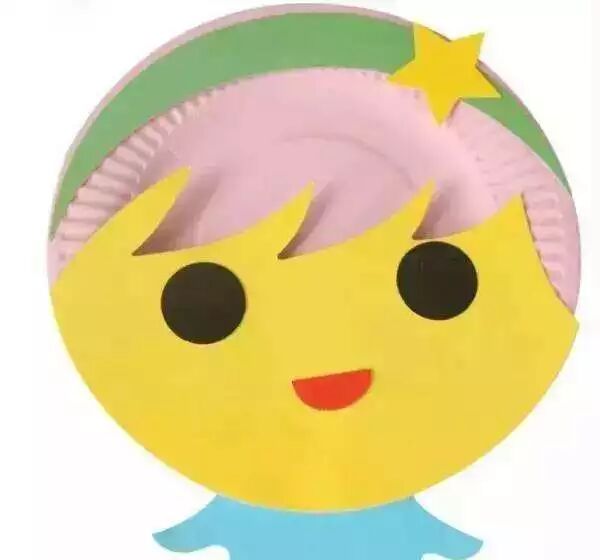 然后,老师用2个盘子做对比,告诉孩子我们要为盘子娃娃做好看的头发。老师先给幼儿示范剪断纸条,然后让幼儿模仿,并剪好其余纸条,其间,老师要给予肯定和鼓励。在此过程中,老师将胶棒涂抹于“盘子娃娃”的头顶。待幼儿剪好纸条,老师示范将“头发”(纸条)粘贴到娃娃头顶,然后让幼儿模仿。做好盘子娃娃后,老师展示给幼儿,并给予鼓励和夸赞,增加幼儿的成就感。