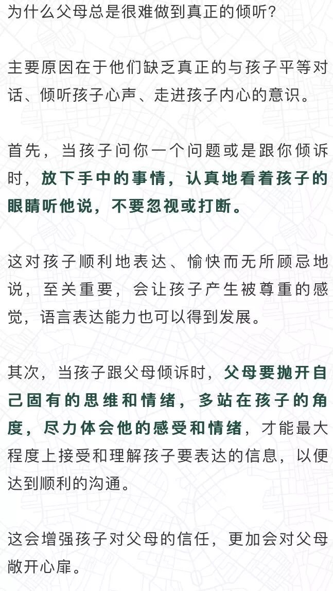 很多家长最大的问题就是说的太多了,不会倾听,太想做一个家长,却忘记了要先把孩子当做一个人平等对待。