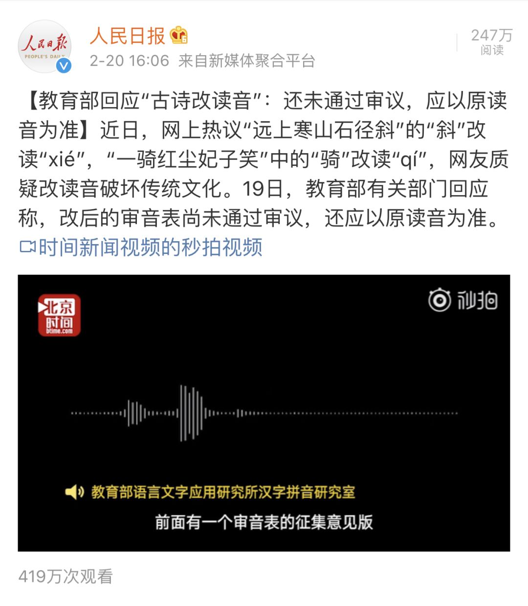 “古诗改读音,经过原作者同意了吗?”
