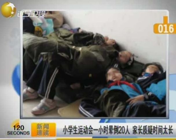 运动会开了一个小时,学生就齐刷刷晕倒。