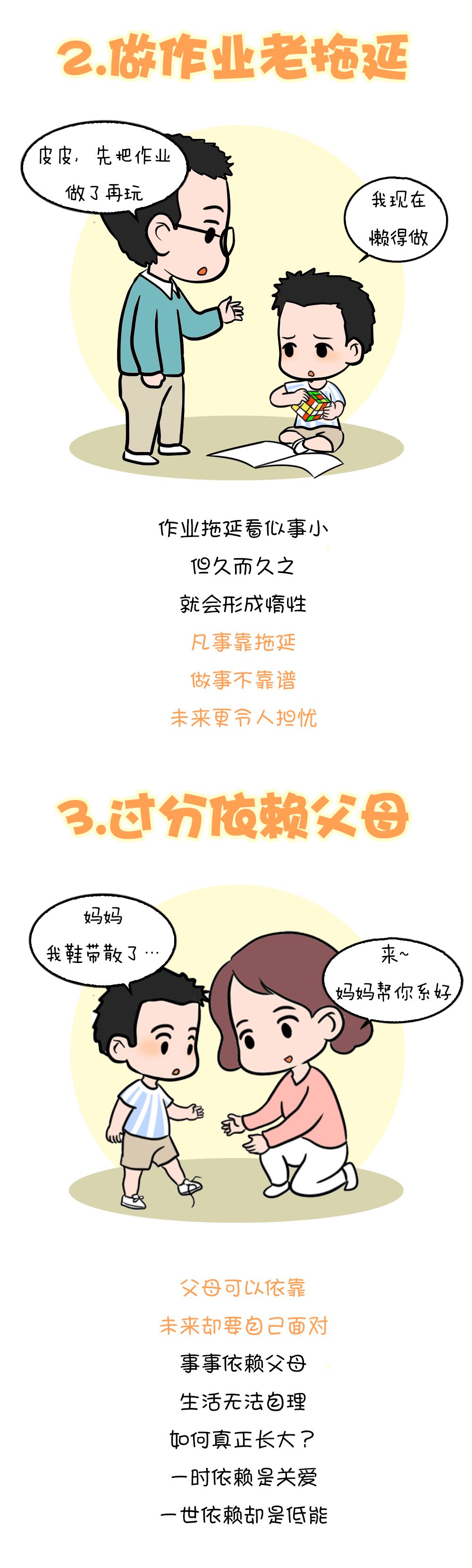 小时候小偷小摸的孩子,长大也会难以克制欲望;从小善于撒谎的孩子,长大也是满口谎言;习惯了父母溺爱,走出去也会以自我为中心;做事拖沓不用心,以后也拖拖拉拉、十分懒散……