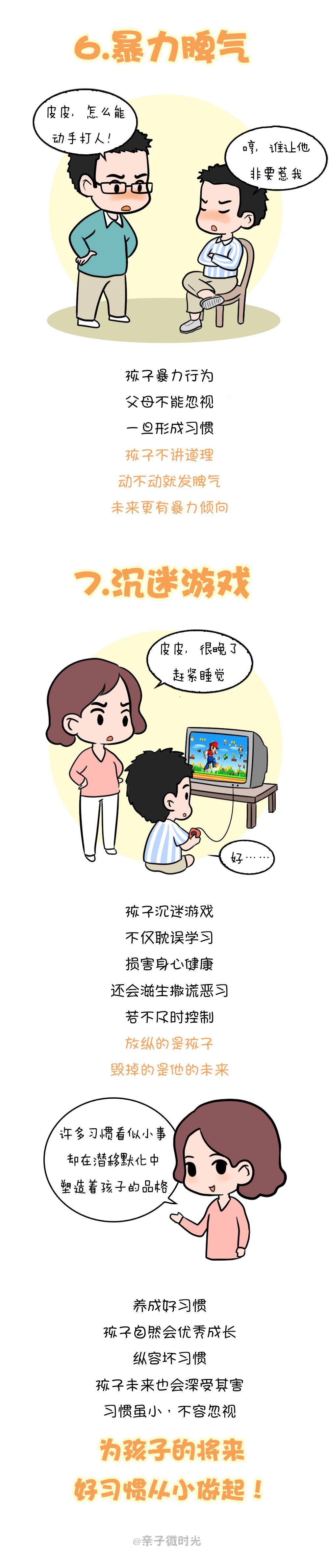 很多孩子,看到一些不好的行为之后就会心生好奇,本意只是模仿一下,引起父母的关注。若是父母仅仅把这些小习惯当成了“孩子还小不懂事,长大就好了”,孩子就会默认父母纵容自己的恶行,一步步堕落下去。