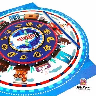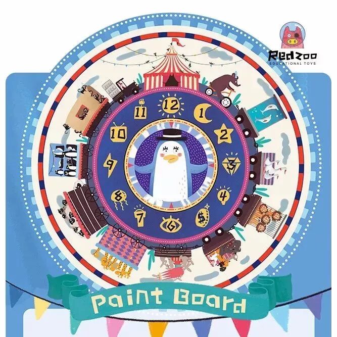 这里还有一个非常别致的设计,在表盘上对应的时间数字后有相同数量的动物。比如3后面就是3只大白鹅,4后面就是4头狮子。宝宝可以一边数数一边认识数字,经常是光这一块儿就玩得不亦乐乎。
