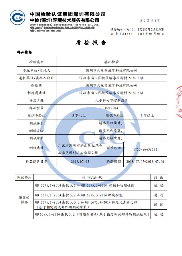 最后附上产品的质检报告,家长孩子可以安心使用。