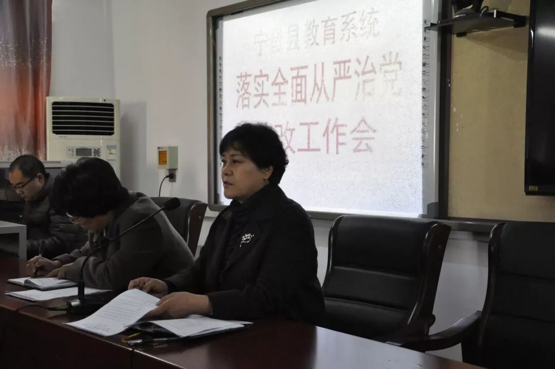 县委教育工委书记、教育局党组书记、局长白志芬在讲话中指出,“全面从严治党”是党中央在总结历史经验,分析判断现阶段形势,着眼于党和国家未来发展基础上作出的一项重大战略部署。落实中央“党要管党,从严治党”要求,是各级党员领导干部一项长期的重要政治任务。她要求,一是要加强学习。党的十八大以来,特别是十九大提出习近平新时代中国特色社会主义思想以来,党中央对党建、执政、发展、改革等提出了一系列新思想、新理念和新举措。全体党员要切实加强政治理论学习,不断提高对党的基本理论、基本路线、基本纲领和党的历史责任的正确认识,深刻领会“全面从严治党”对于党、国家和民族的深远意义;二是要以上率下。各党组成员、股室负责人、学校校长要以上率下,坚持先学一步,主动学、自觉学、积极学,认真撰写学习笔记、心得体会、调研文章。同时,在抓好自身学习的同时,抓好分管科室、分包学校党员干部教师的学习活动;三是要明确责任。各股室、学校负责人要切实履行好管党治党责任,层层落实主体责任和监督责任,对照巡视组提出的整改意见,制定整改措施,落实整改责任,明确整改时限,确保从严治党“两个责任”专项整改工作取得实效。