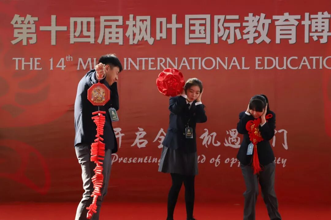 火红的旗帜、飘扬的气球竖幅、志愿者们贴心的服务、荣誉周班精心准备的开幕式表演、创意满满的各学科优秀作品……无一处不展示着枫叶人饱满的热情以及中西文化融合的自信。初冬的清晨伴随着冬日的暖阳,与会者精神饱满,热情洋溢,随着大学招生代表的到场,就仿佛一颗沸腾石子投入到平滑如镜的水中,现场的气氛在一瞬间火热了起来。上午九点整,高三学生以及家长陆续进场,武汉枫叶国际教育博览会的重头戏正式上演。