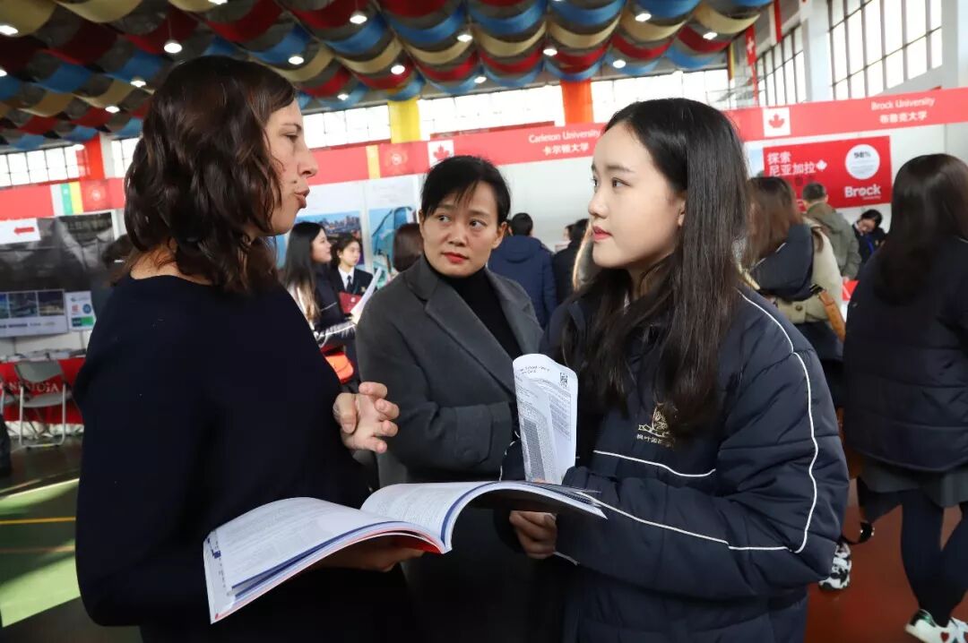 今年武汉枫叶国际学校首次有幸请到了加拿大驻上海总领事馆的领事来到招生现场。领事馆的领事们会在第一时间为所有家长和同学答疑解惑,解决申请留学加拿过程中,学生家长提出的各种问题,诸如最新办理签证的政策,到达加拿大之后衣食住行等等。同时,留学中心的指导老师、课程指导顾问、高三全体领事及授课老师都在现场为会展的成功开展保驾护航,及时为学生在申请过程中遇到的问题提供帮助,为高三学子们加油、鼓劲。