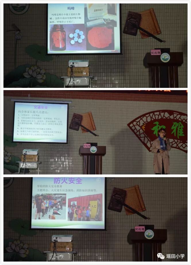 家庭教育讲座结束后,由陈桂荷副校长在毒品预防、交通安全、消防安全、学生上下学安全等方面对家长讲述学校的做法和对家长的要求,让家长明确自己的责任,为孩子的安全、健康成长担负起监护人的职责。