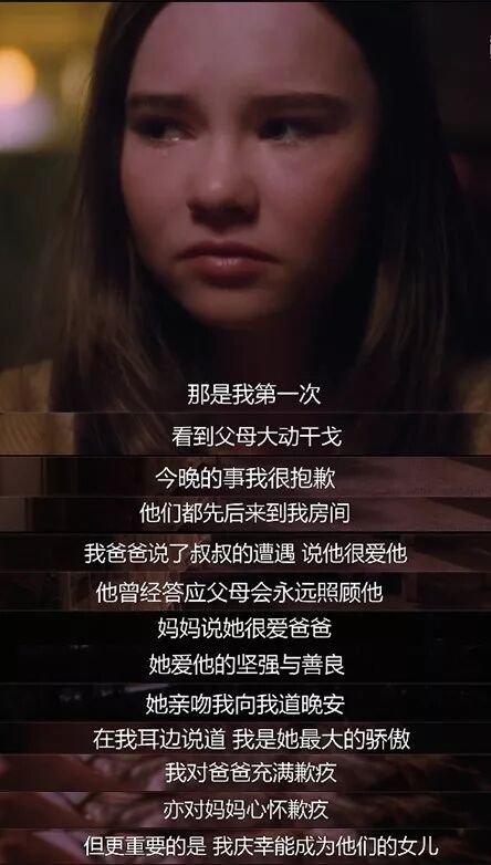 这是朱莉第一次看到父母大动干戈,但是在晚上睡觉前父母分别跑到朱莉的房间。