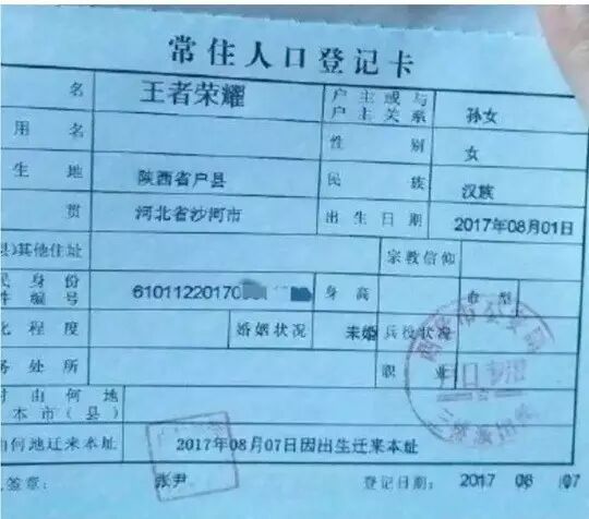 最近看了一则新闻,陕西一家长给孩子取名王者荣耀,还上了户口。有图有真相,关键还是个女!孩!子!