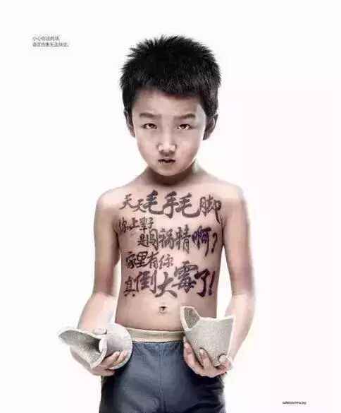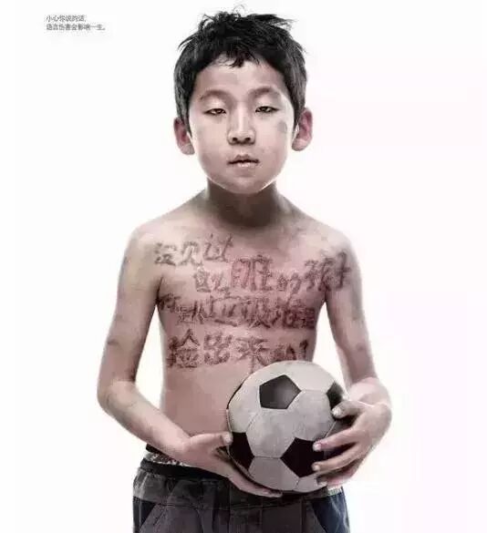 海报的制作人,把这些话刻在了孩子的身上,就像伤疤一样。