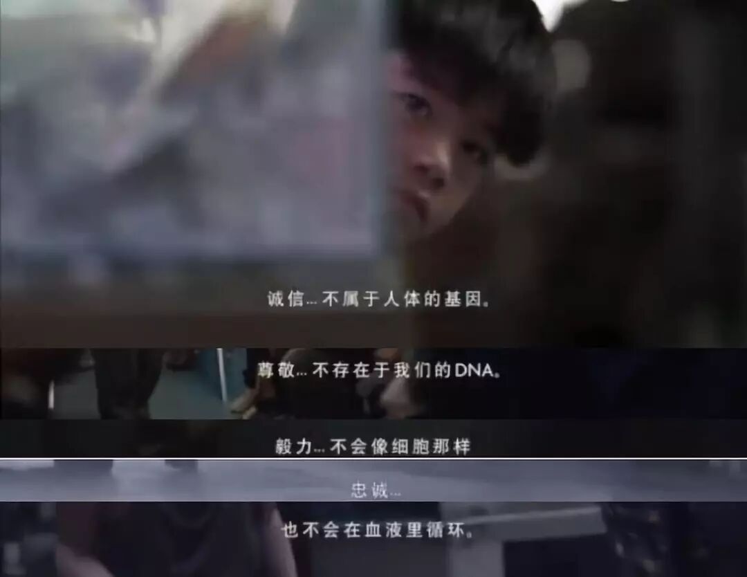 就像短片里所说的:诚信,不属于人体的基因。尊敬,不存在于我们的DNA。毅力不会像细胞那样在身体内繁衍。忠诚也不会在血液里循环。不论先天如何,最终价值观塑造我们。