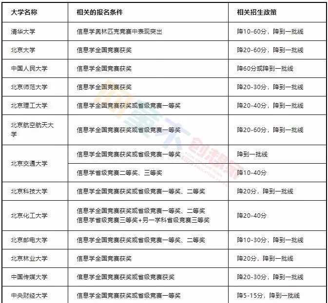 清华、北大、中科大、北航、上交等几十所大学在 2018 自主招生简章中对工科类专业自主招生条件中均提到了对信息学竞赛获奖的要求。