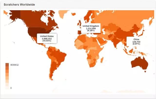 不要以为就中国这样,事实上,国外的编程教育,实施得远早于中国,拿Scratch这个世界知名的少儿编程平台来说,据前年Scratch 的统计显示,中国目前学习 Scratch 的人数只有 20 万不到,而美国和英国人口远少于中国,却分别有近900万和近200万的学习者。