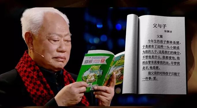 郑渊洁做父亲之后,在《父与子》的父篇里写道:“我的儿子是一头小猪,这就足够了。我不羡慕别人家猛虎的儿子,我也不嫉妒人家的千里马儿子。”