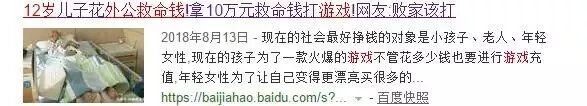 2018年8月13日,杭州一12岁男孩小周10天内在游戏中花掉10万块,而这笔钱是他外公做手术的救命钱。