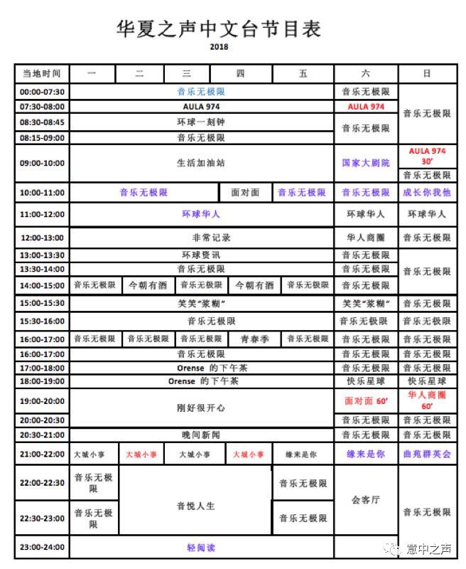 意大利华夏之声中文台收听频率:米兰FM92.4、佛罗伦萨FM107.9、普拉托FM107.9。
