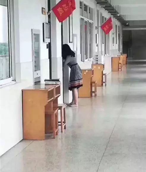 2018年10月底,有两张照片在朋友圈疯传,画面中是一名女子的背影。比较特别的是,其中一张照片里,该女子一只手提着高跟鞋,双脚赤裸走在水泥地面上。而在另一张照片中,该女子又停在一间教室门口向里面张望。