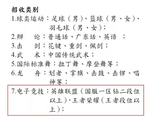 澳门科技大学的《2019招生简章》中就将「电子竞技专业」作为体育特长生招收特长学生。