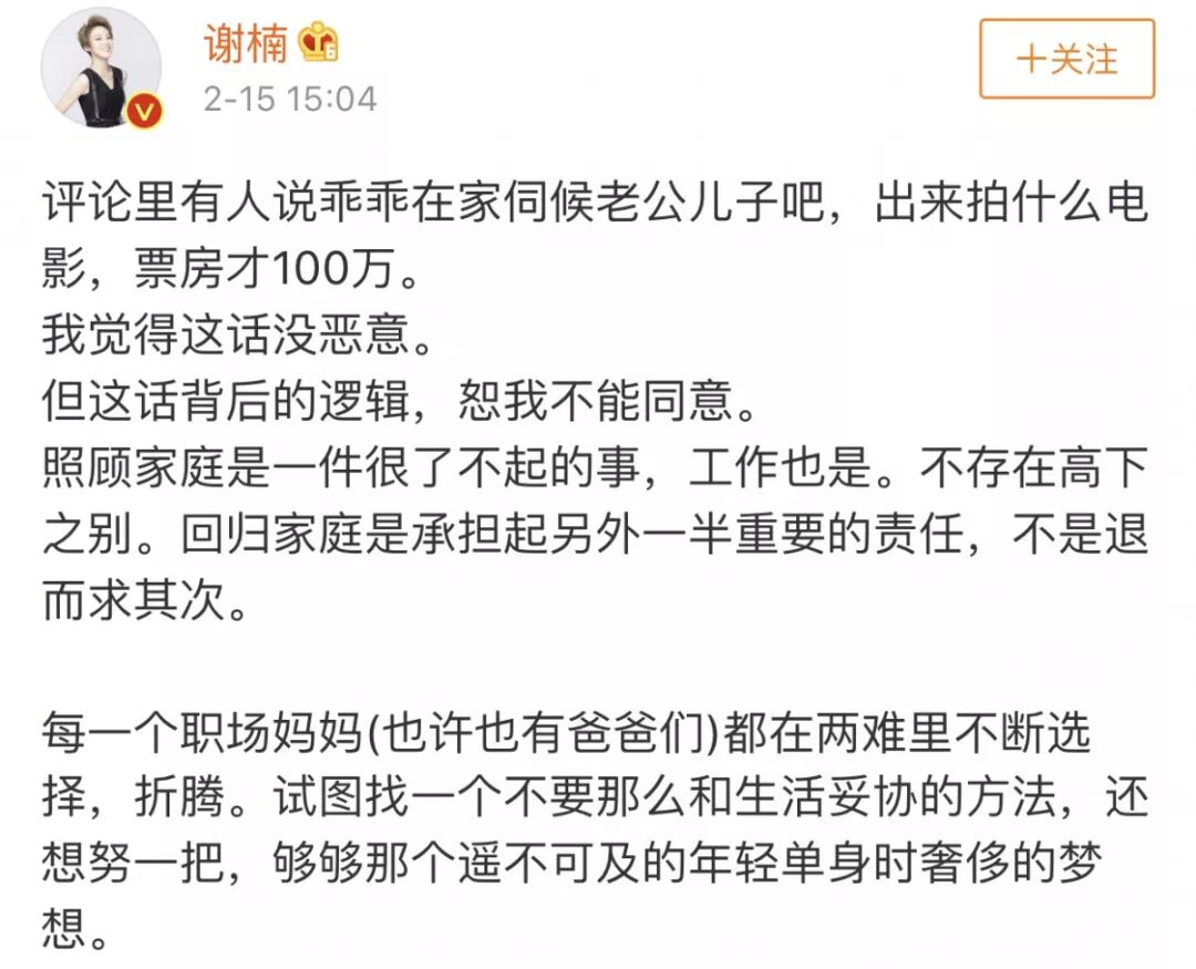 虽然谢楠之后在微博发文有力回击: