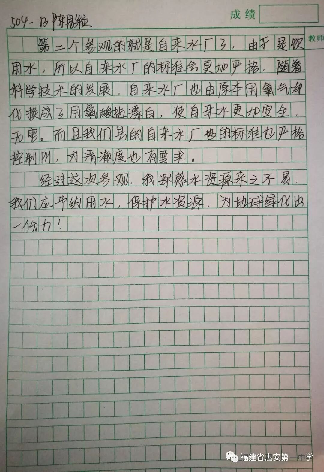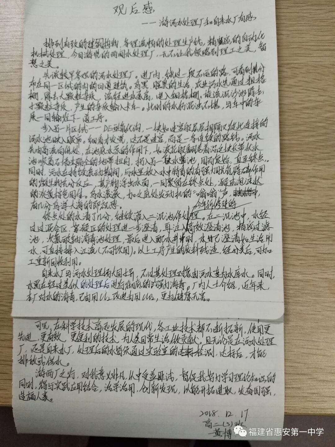 为落实教育部《关于推进中小学生研学旅行的意见》的要求,进一步推进素质教育,开拓学生视野,增长知识,12月15日上午,惠安一中高二年50多名师生踏上了“实践出真知”研学实践之旅,把课堂搬进了自来水厂和污水处理厂,体验化学的工业操作,感受化学在日常生活中的渗透运用。