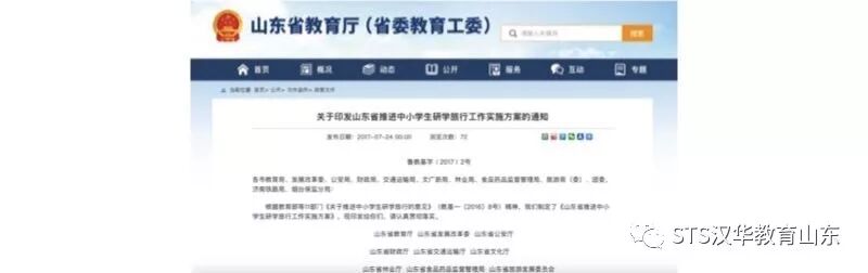 2017 年 7 月,山东省教育厅为推进研学旅行,联合 12 部门共同印发了《山东省推进中小学生研学旅行工作实施方案》,要求各地中小学把研学旅行纳入学校教育教学计划,学校每学年安排集体研学旅行不少于 2 次。